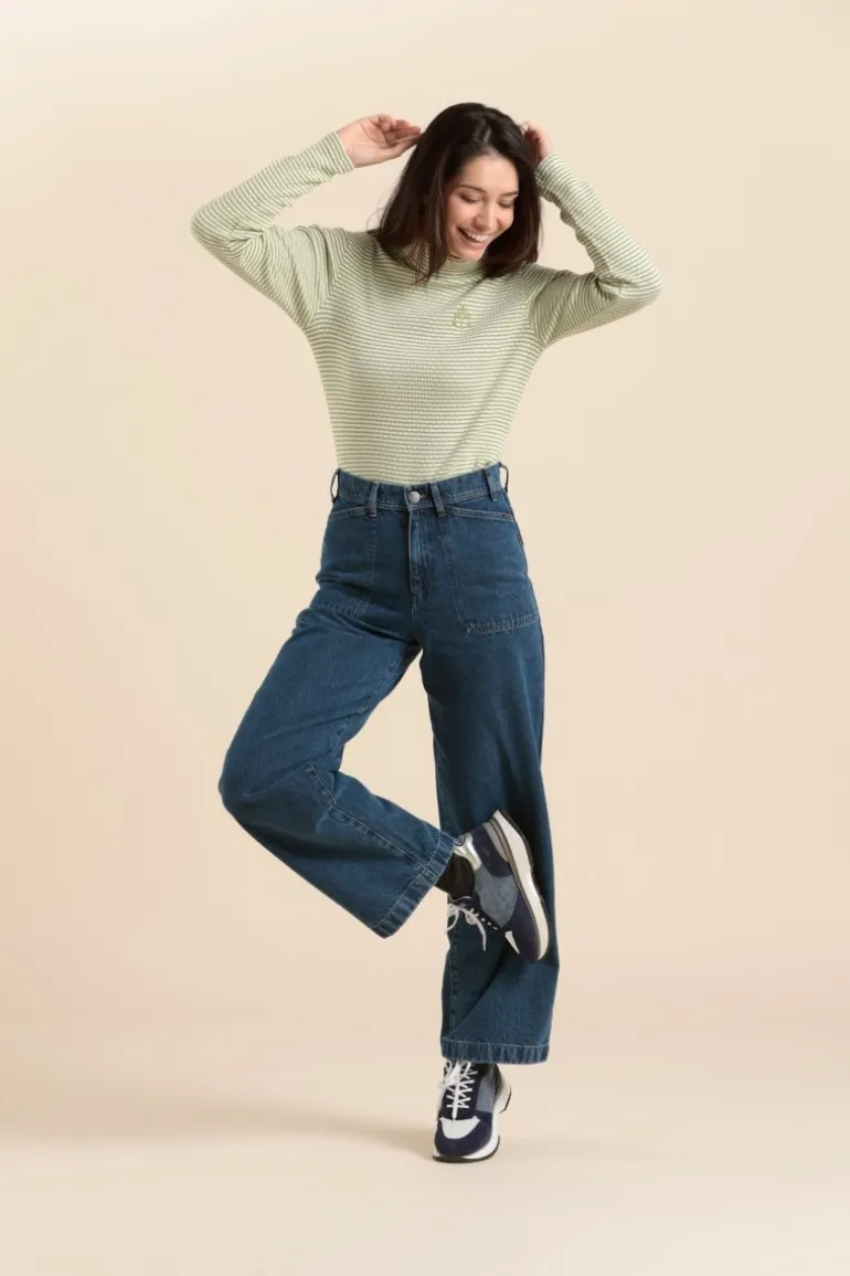 – 100% Coton bio- Tee shirt côtes rayées- Coton organique GOTS – Broderie ancre