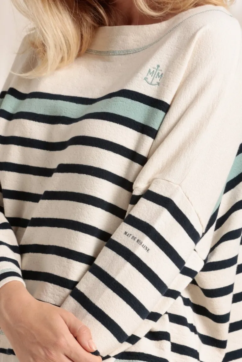Les caractéristiques de notre marinière femme oversize : – 100% coton biologique rayé- Coupe courte et oversize- Col …