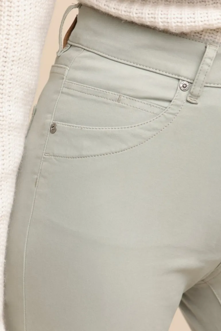 – Coton, coton recyclé, elastomultiester & élasthanne- Pantalon satin – Taille haute – Jambe droite- 2 poches à l…