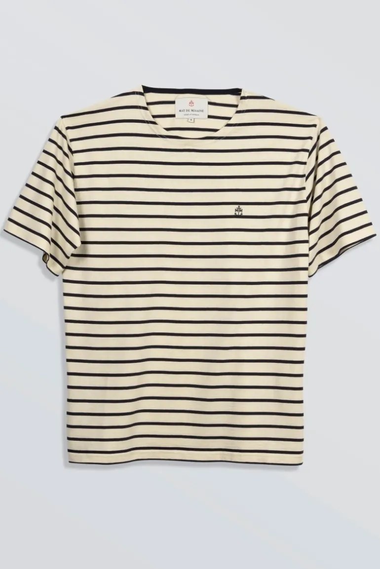 – 100% Coton bio- Jersey rayé léger – Col rond – Manches courtes- Broderie logo poitrine – Petite fente d'aisance …
