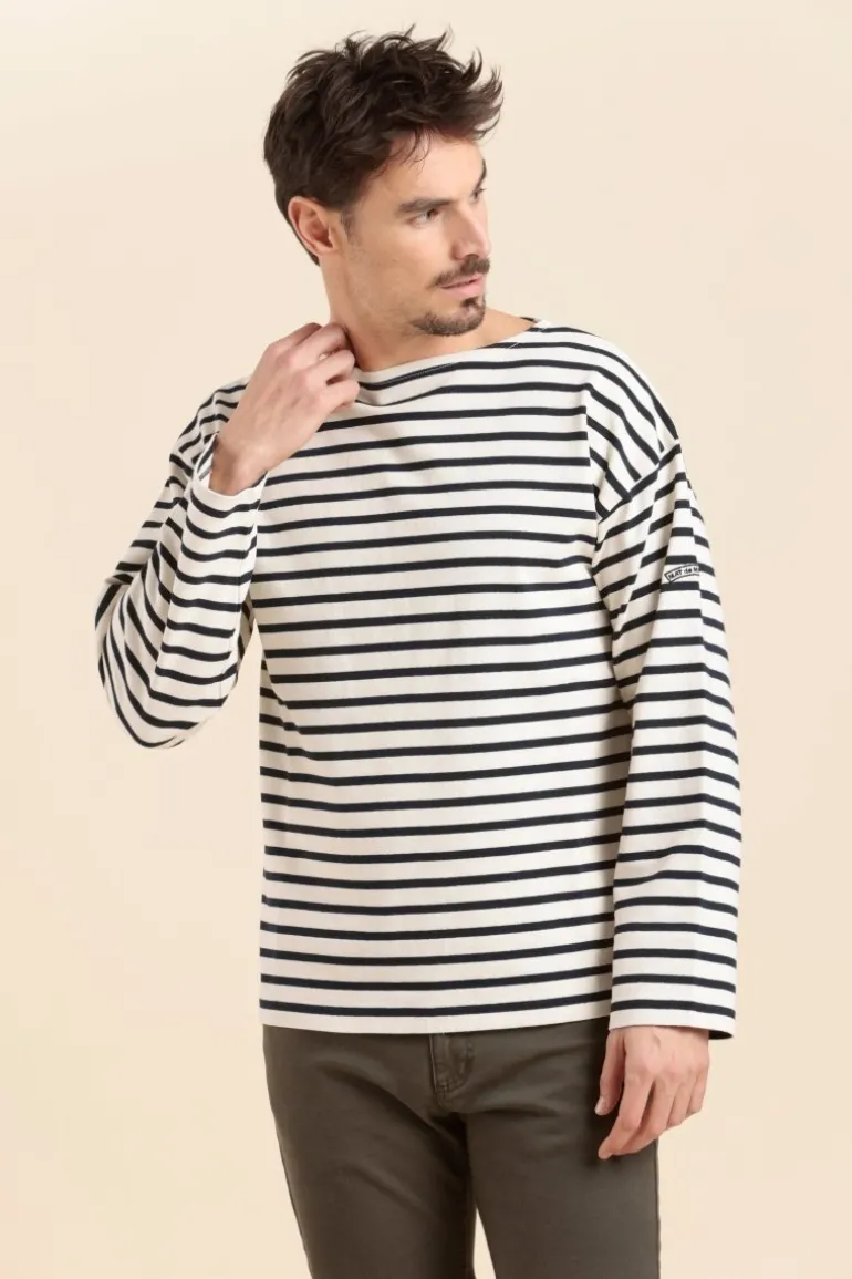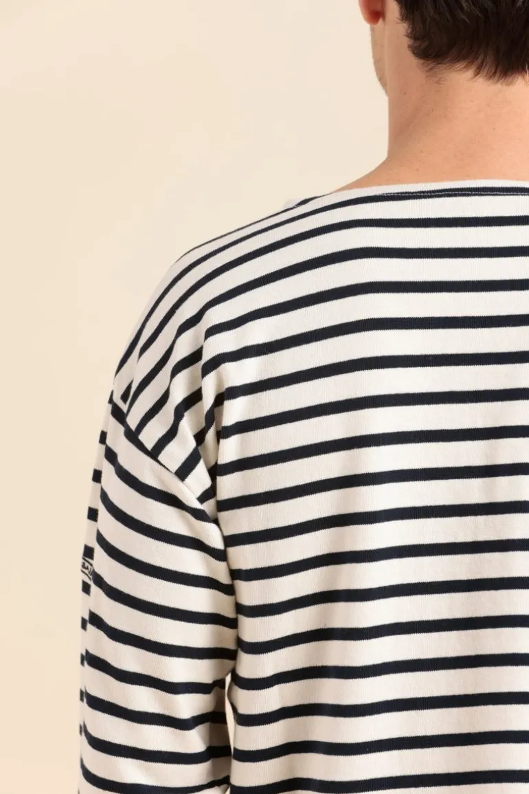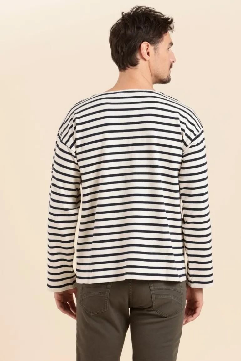 – 100% Coton- Maille lourde rayée- Fitting comfort- Badge brodé