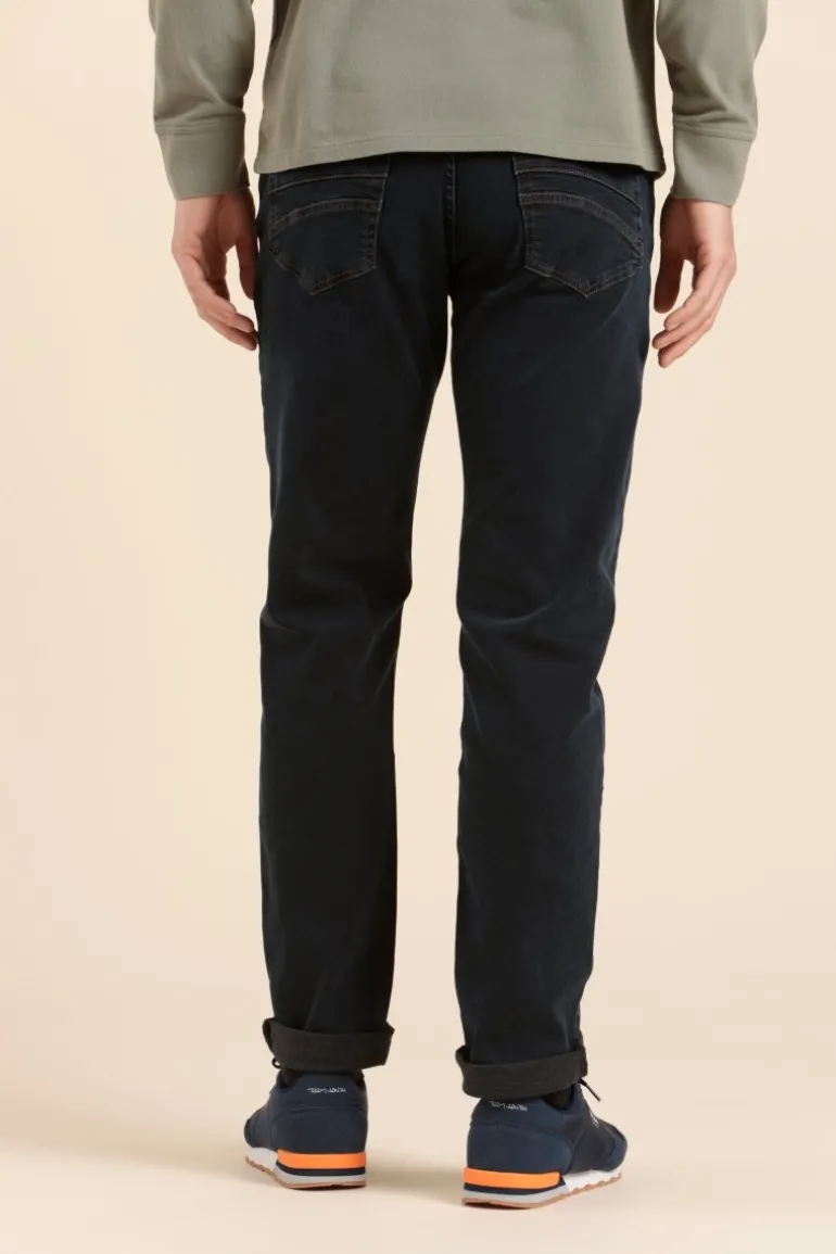 – Coton & elasthanne – Pantalon denim- Toile épaisse – Eco-lavage – Fitting regular – 5 poches – Fermeture bouton e…