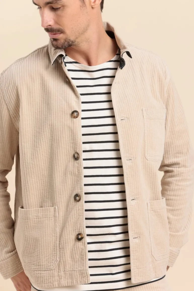 – Coton bio & elasthanne – Veste de travail – Velours grosses côtes écoresponsable- Broderie placée