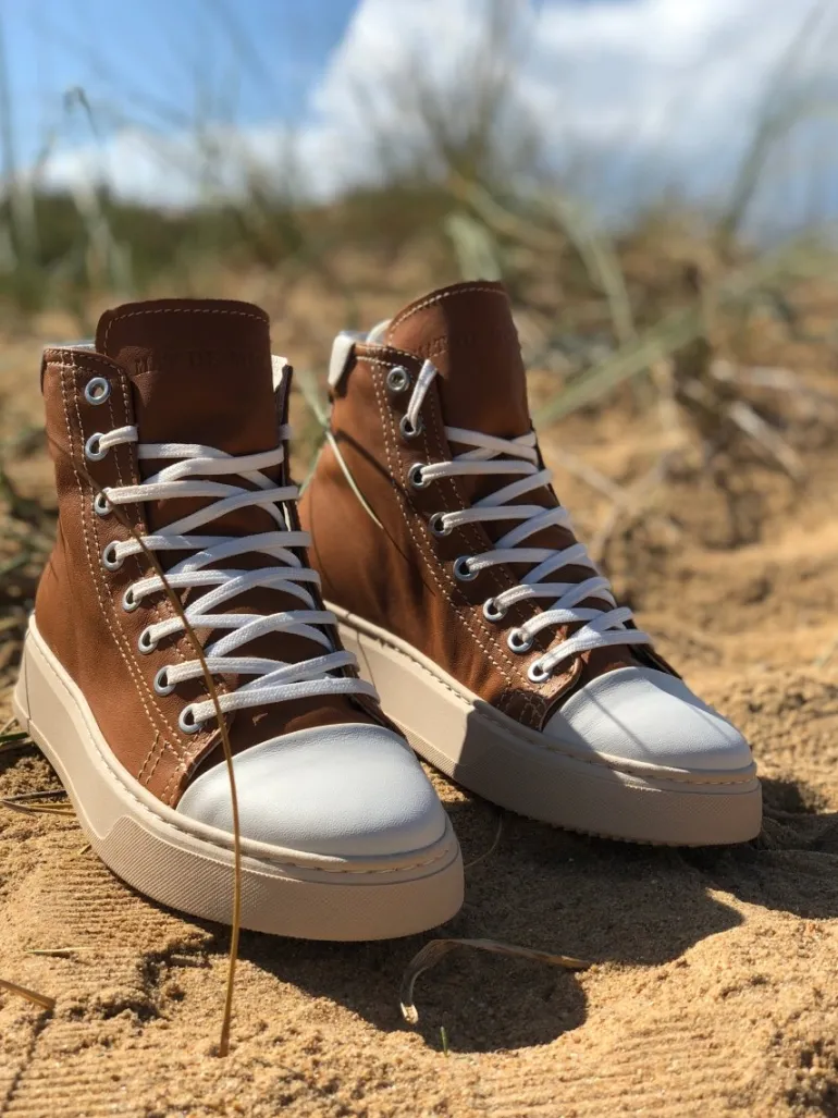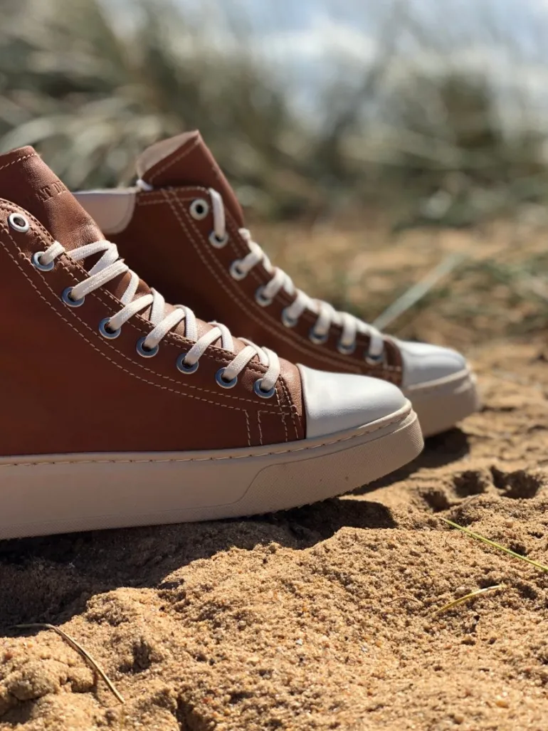 – Semelle caoutchouc – Cuir – Logo brodé – Serrage lacet