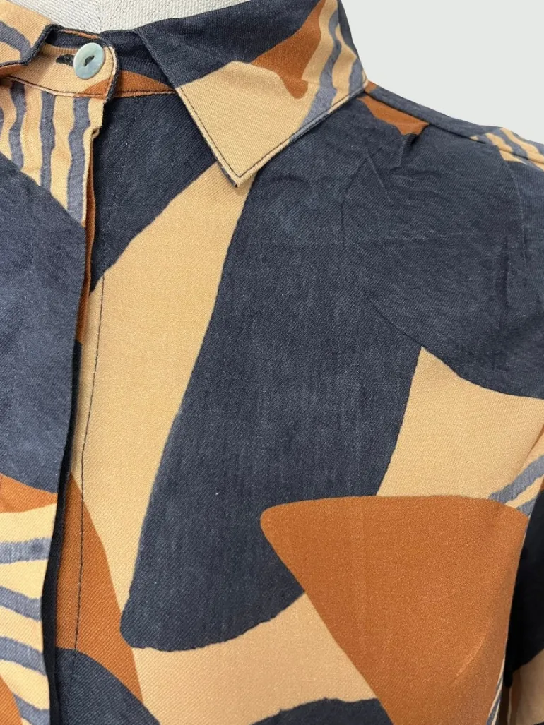 – 100% Viscose- Viscose imprimée- Jeu de fronces au dos – Manches longues- Bas de manches boutonnées- Longueur : 64,7c…