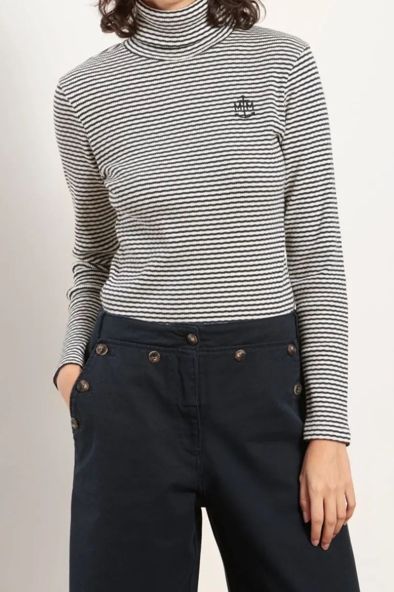 – 100% Coton bio- Tee shirt côtes rayées- Coton organique GOTS – Broderie ancre