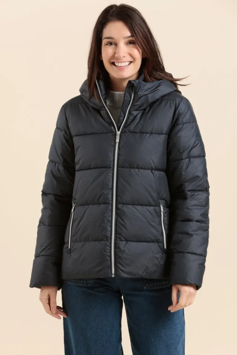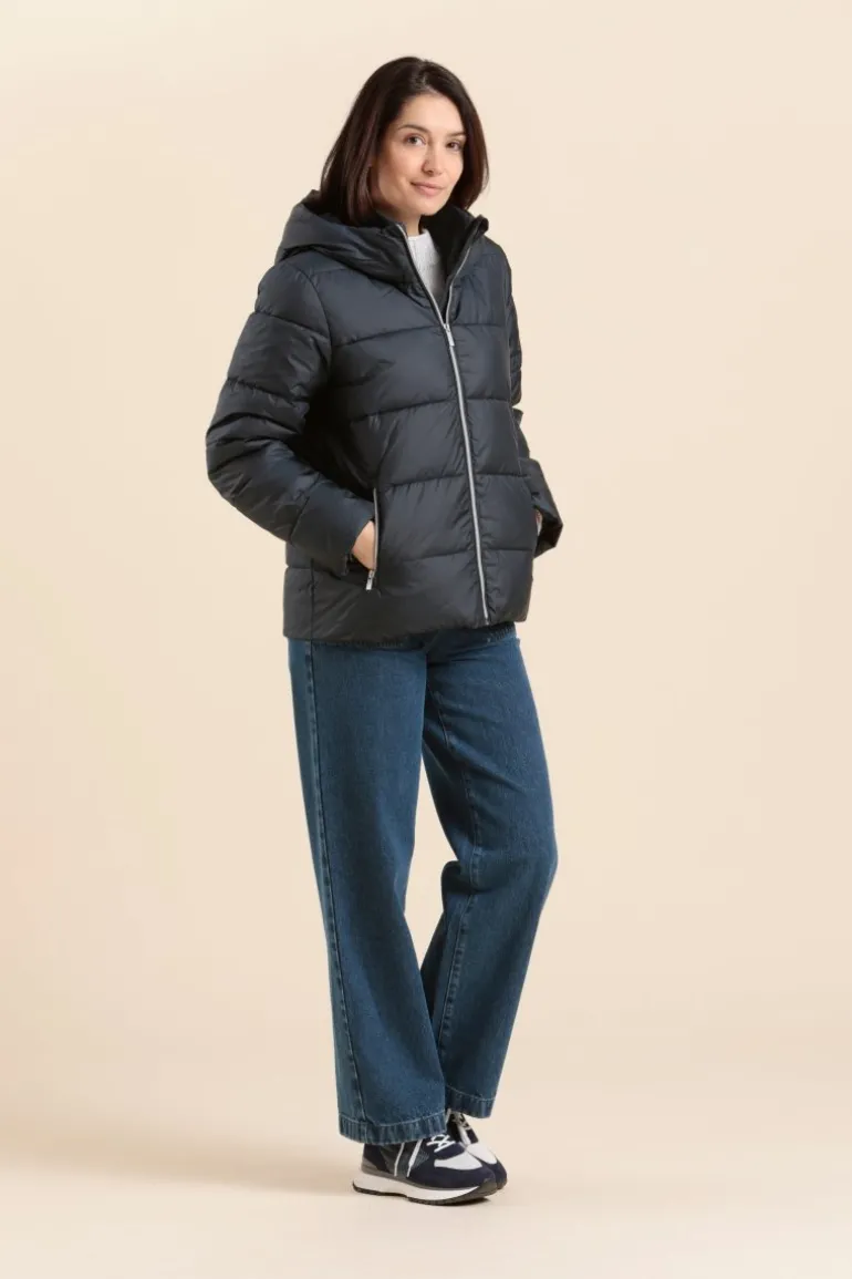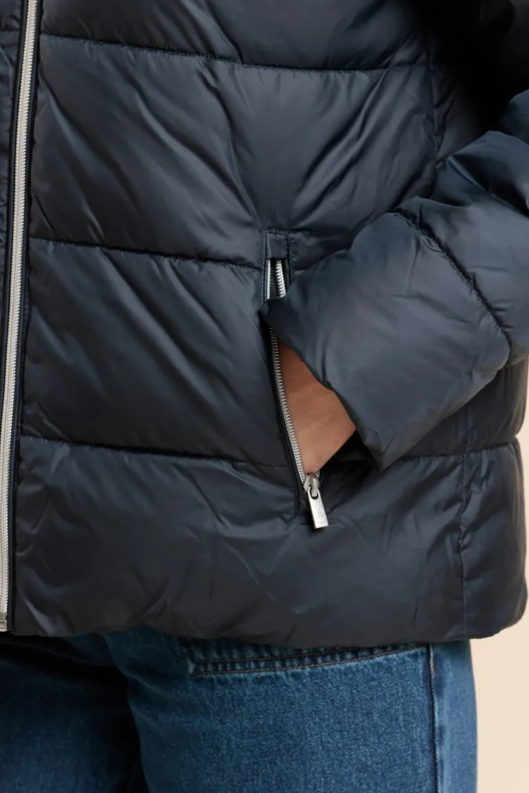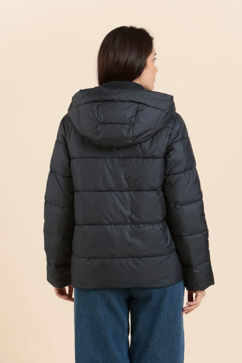 – 100% Polyester recyclé- Doudoune courte matelassée – Capuche avec fermeture boutonnée- Dessus polyester recyclé – …