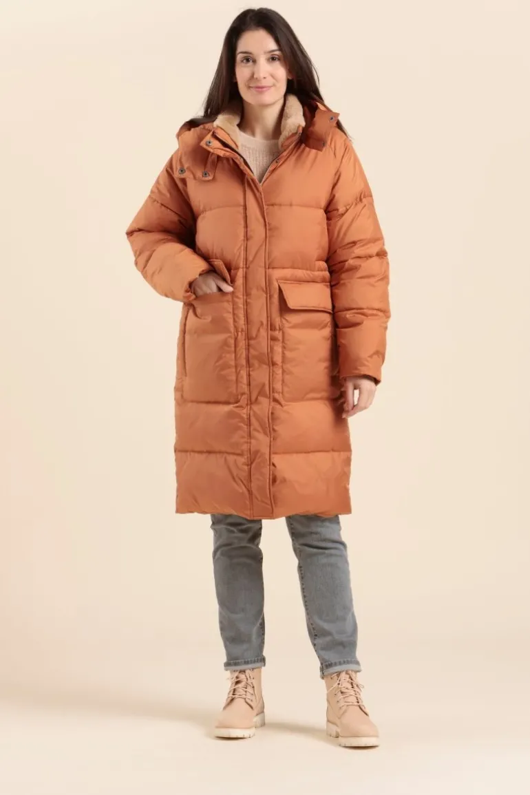 – 100% Polyester recyclé- Doudoune longue matelassée – Capuche avec fermeture boutonnée- Dessus polyester recyclé – …