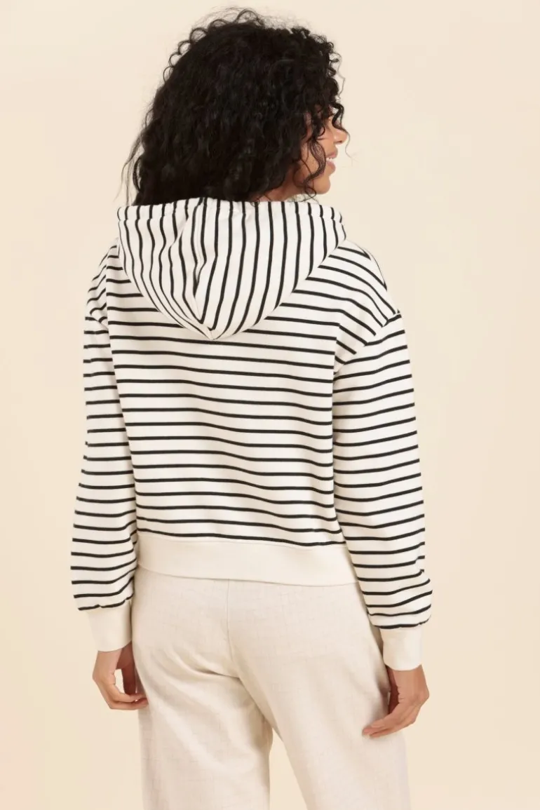 – 100% Coton organique – Cardigan molleton rayé zippé – Capuche avec cordon de serrage- 2 poches passepoilées