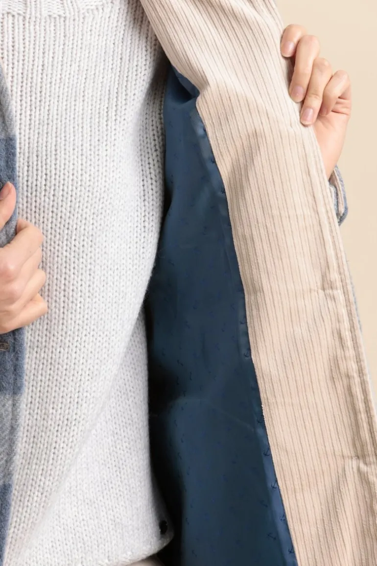 – 100% Laine vierge – Manteau lainageà grand carreaux – Doublure satinée- Jacquard ancres- Fermeture boutonnée- 2 poc…