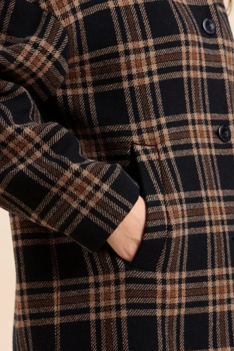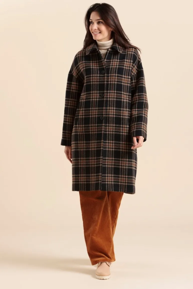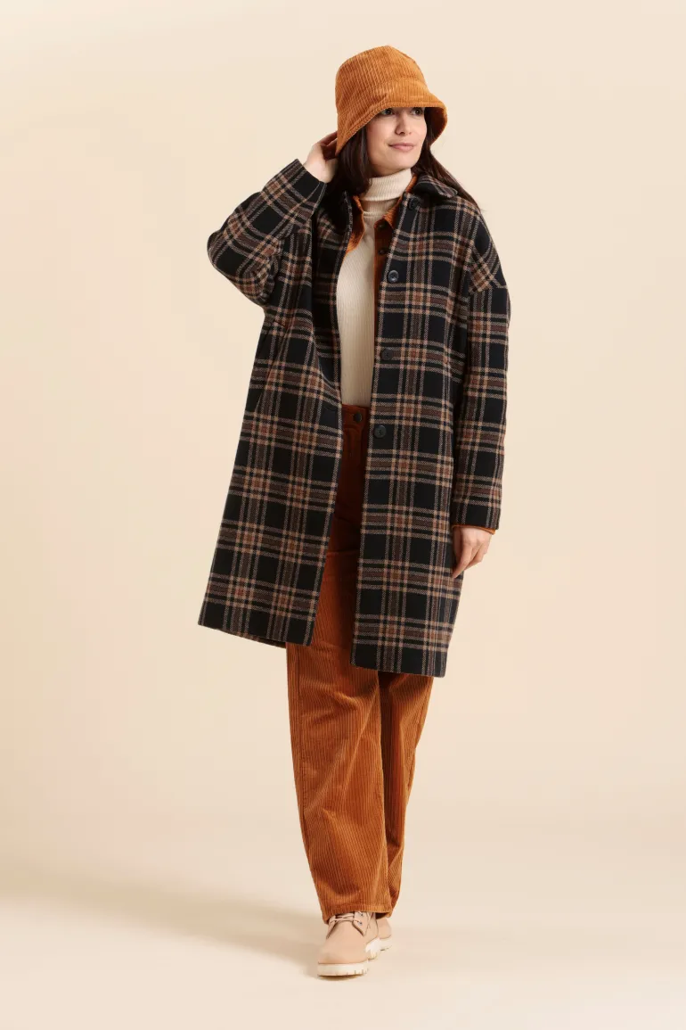 – Laine, polyester et polyamide – Manteau long – Fermeture boutonnée- Lainage à carreaux – 2 poches passepoilées