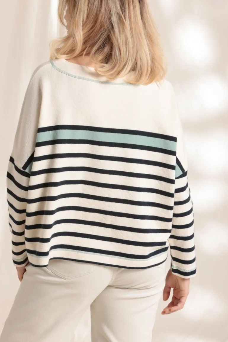 Les caractéristiques de notre marinière femme oversize : – 100% coton biologique rayé- Coupe courte et oversize- Col …