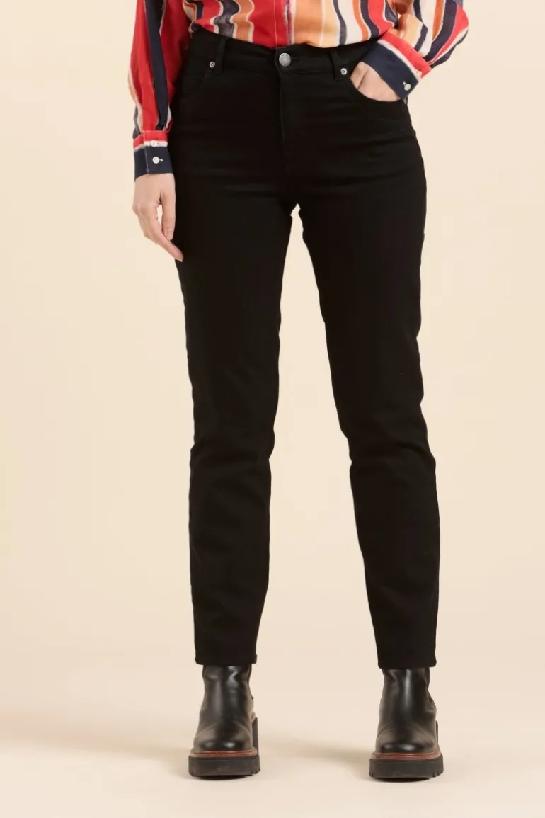 – Coton & elasthanne- Denim black – Taille haute- Jambe droite- 2 poches à l'avant – 2 poches plaquées à l…
