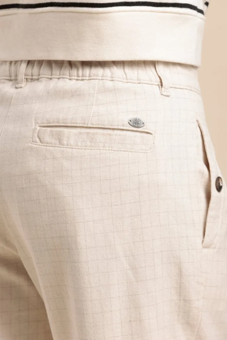 – Coton, viscose & polyamide- Pantalon flanelle de coton- Petits carreaux – Taille élastiquée- Jambe droite- 2 poc…