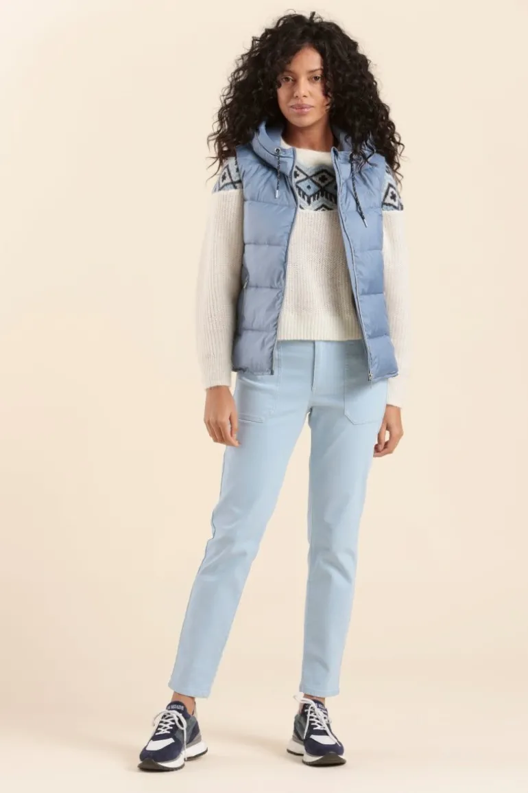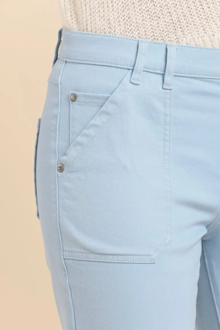 – Coton, coton recylé & elasthanne- Denim couleur- Taille haute – Jambe droite- Double passant ceinture- 2 poches a…