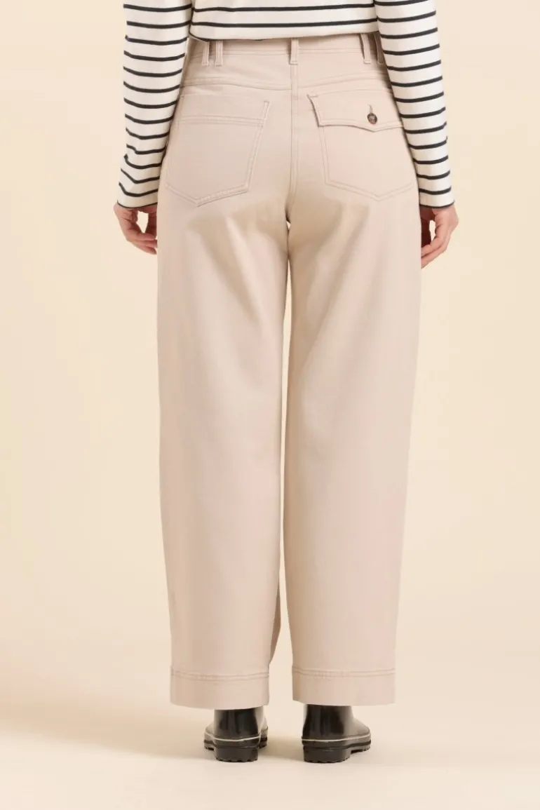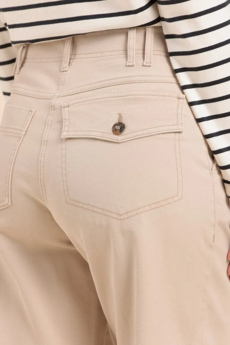 – Coton biologique & elasthanne- Pantalon à pont – Drill de coton organique – Taille haute – Jambe large- Boutons f…
