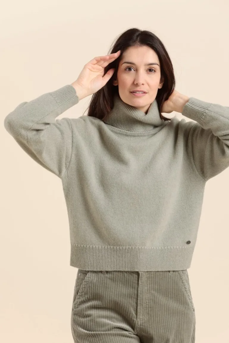 – Laine merinos & cachemire- Pull col roulé – Grosse maille