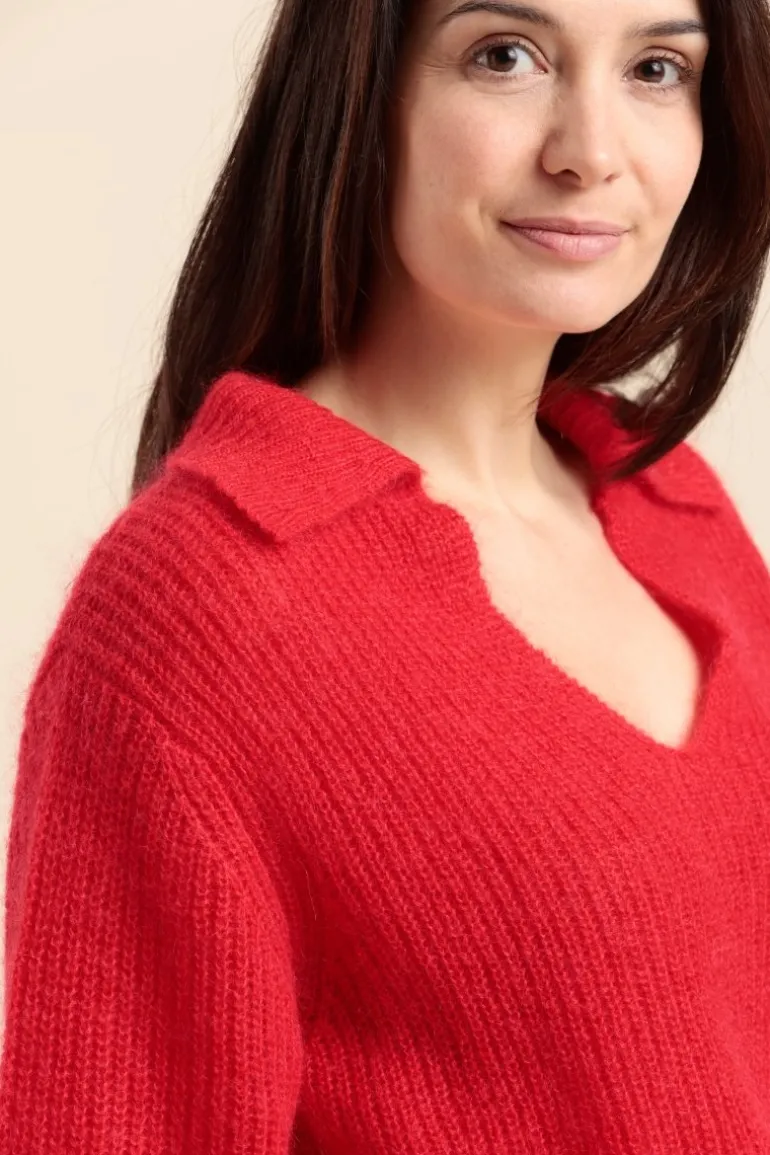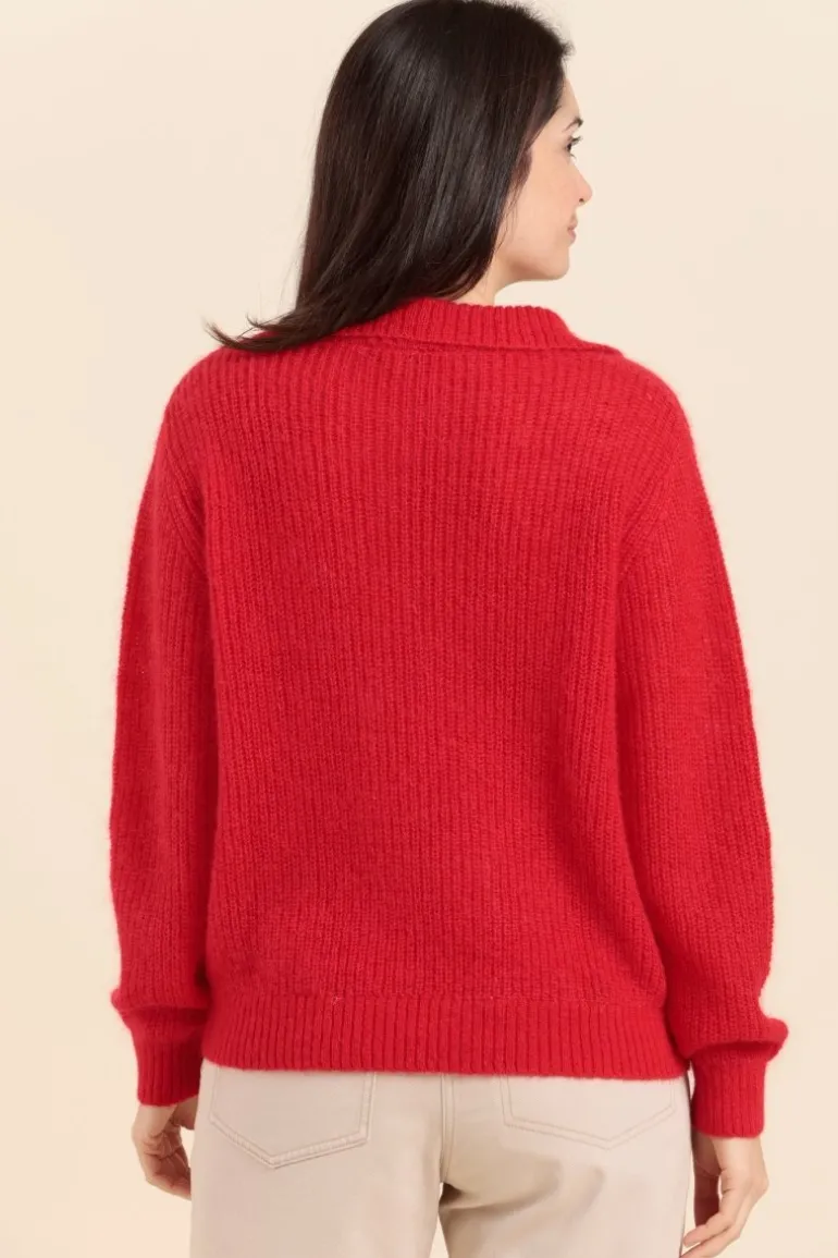 Pull avec détail de col inspiré du col classique de la vareuse, clin d'œil discret à l'esprit nautique Mat de Misaine