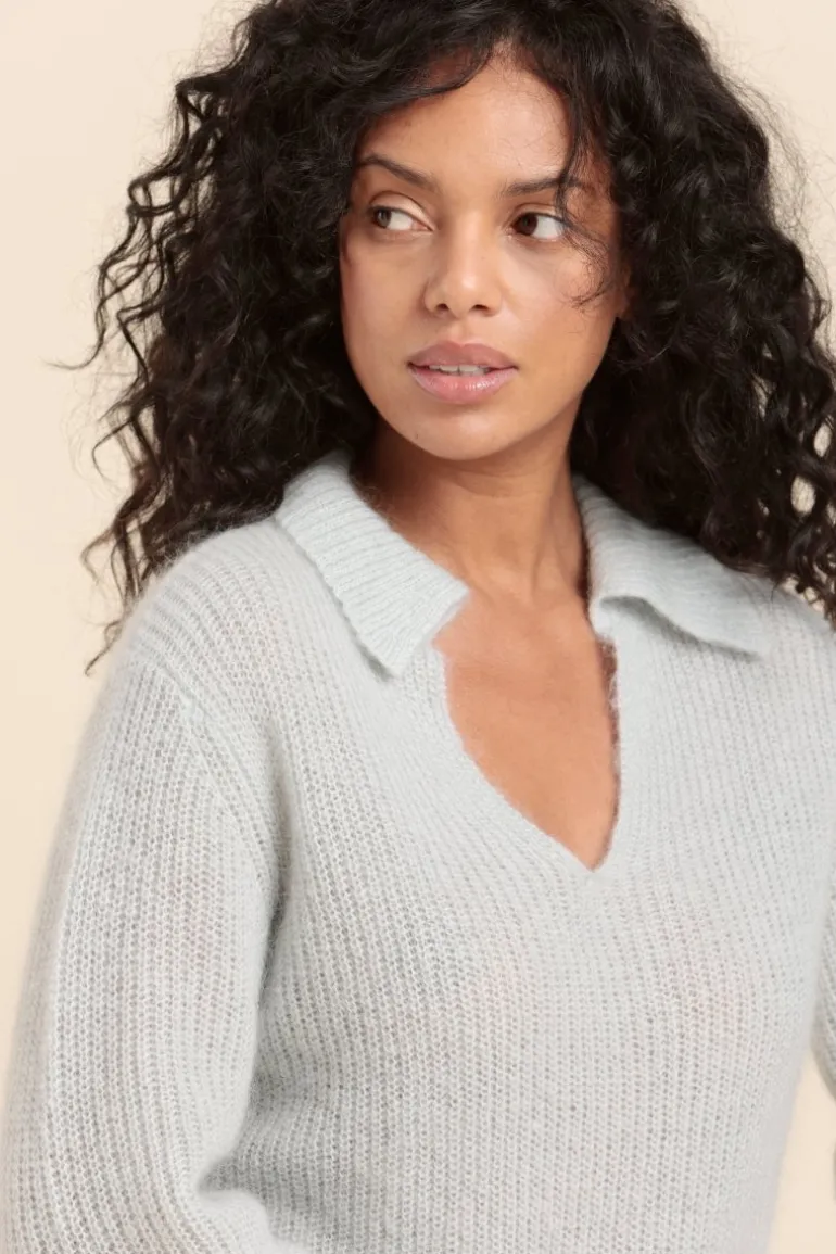 Pull avec détail de col inspiré du col classique de la vareuse, clin d'œil discret à l'esprit nautique Mat de Misaine