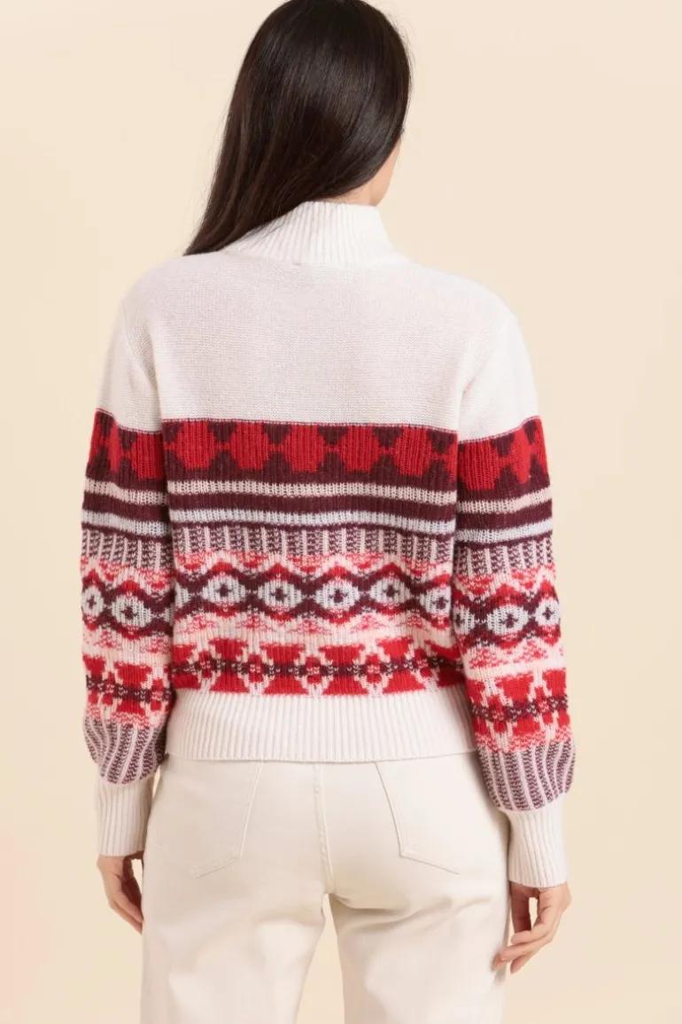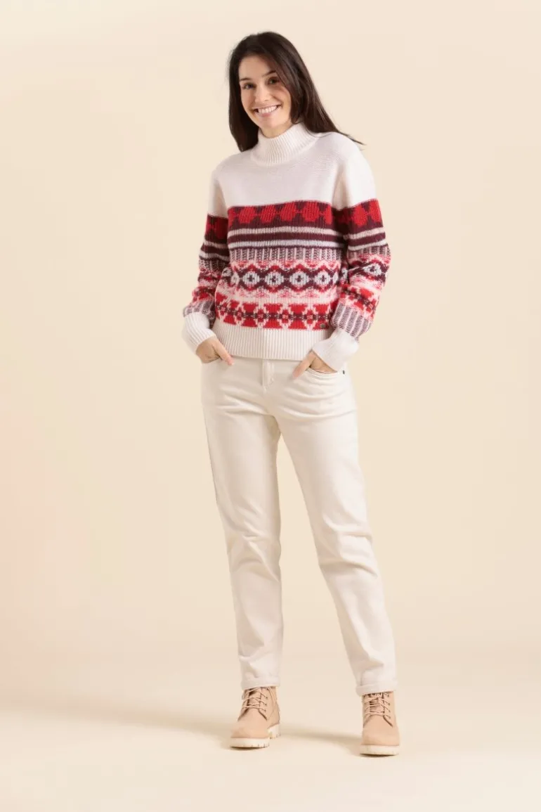 – Laine merinos extrafine & nylon recyclé- Pull jacquard- Grosse maille – Motif exclusif