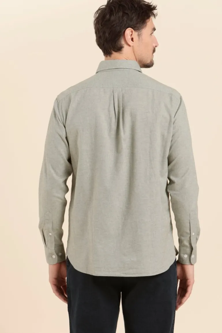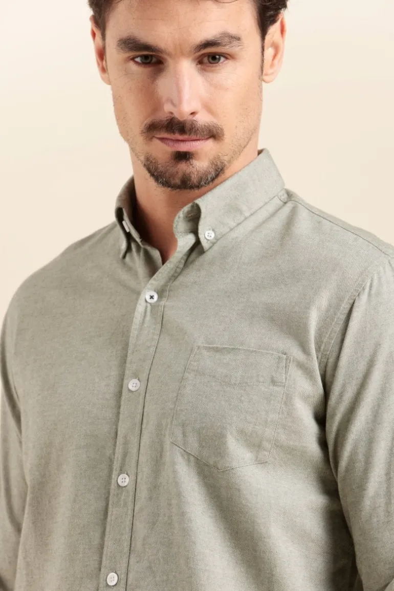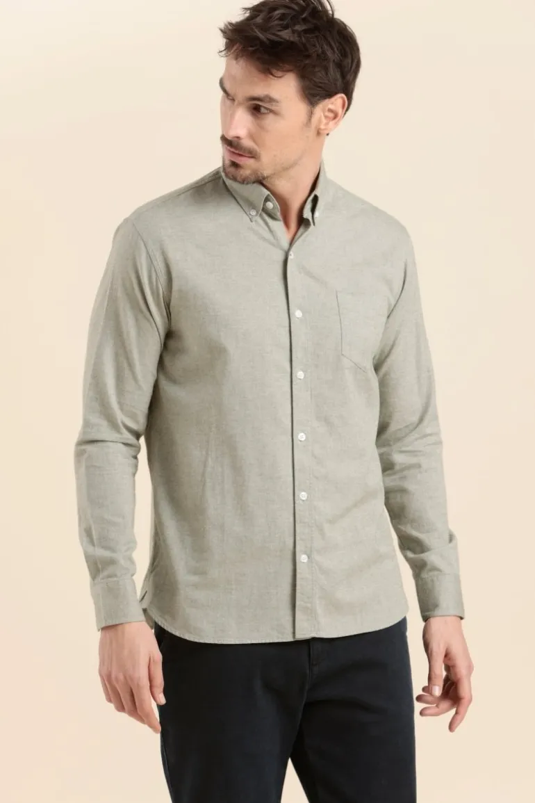 – 100% Coton – Chemise flanelle uni- Armuré twill- Fitting comfort – Poche plaquée poitrine – Bas de manche boutoné