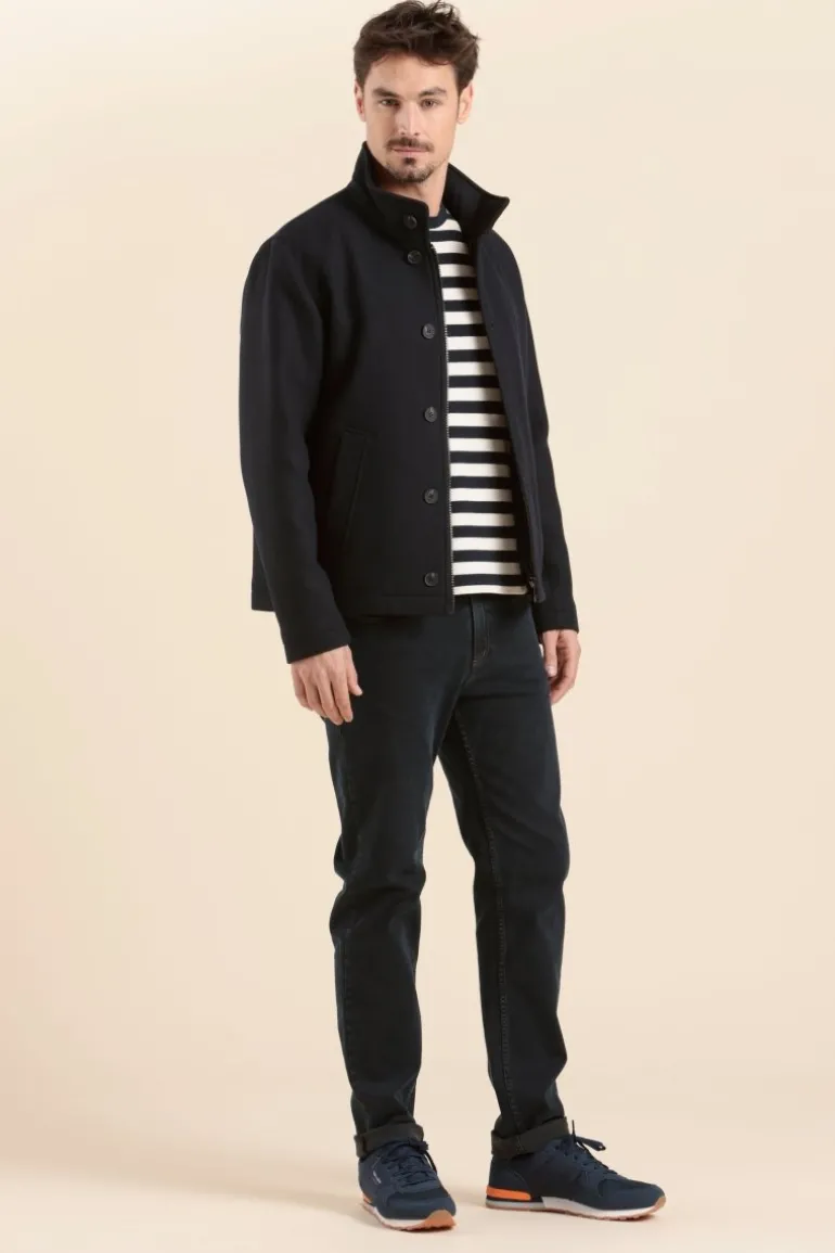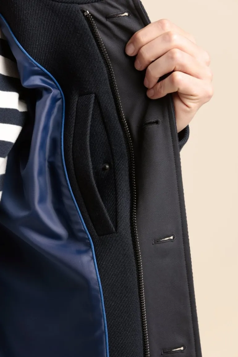 – Laine recyclée, polyester et polyamide- Manteau court – Drap de laine recyclée- Doublure ouatinée- Fermeture par zi…