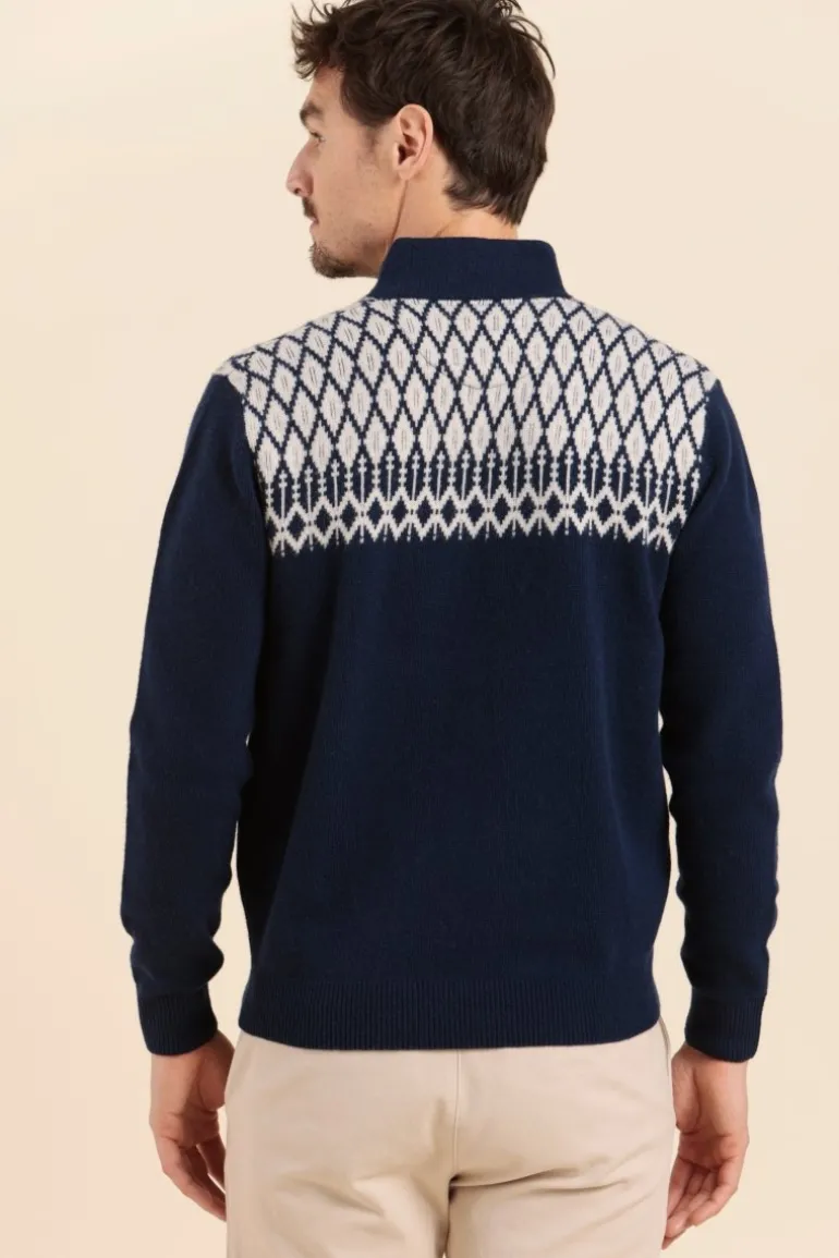 – Laine RWS &nylon recyclé – Pull camionneur – Motif jacquard – Badge brodé
